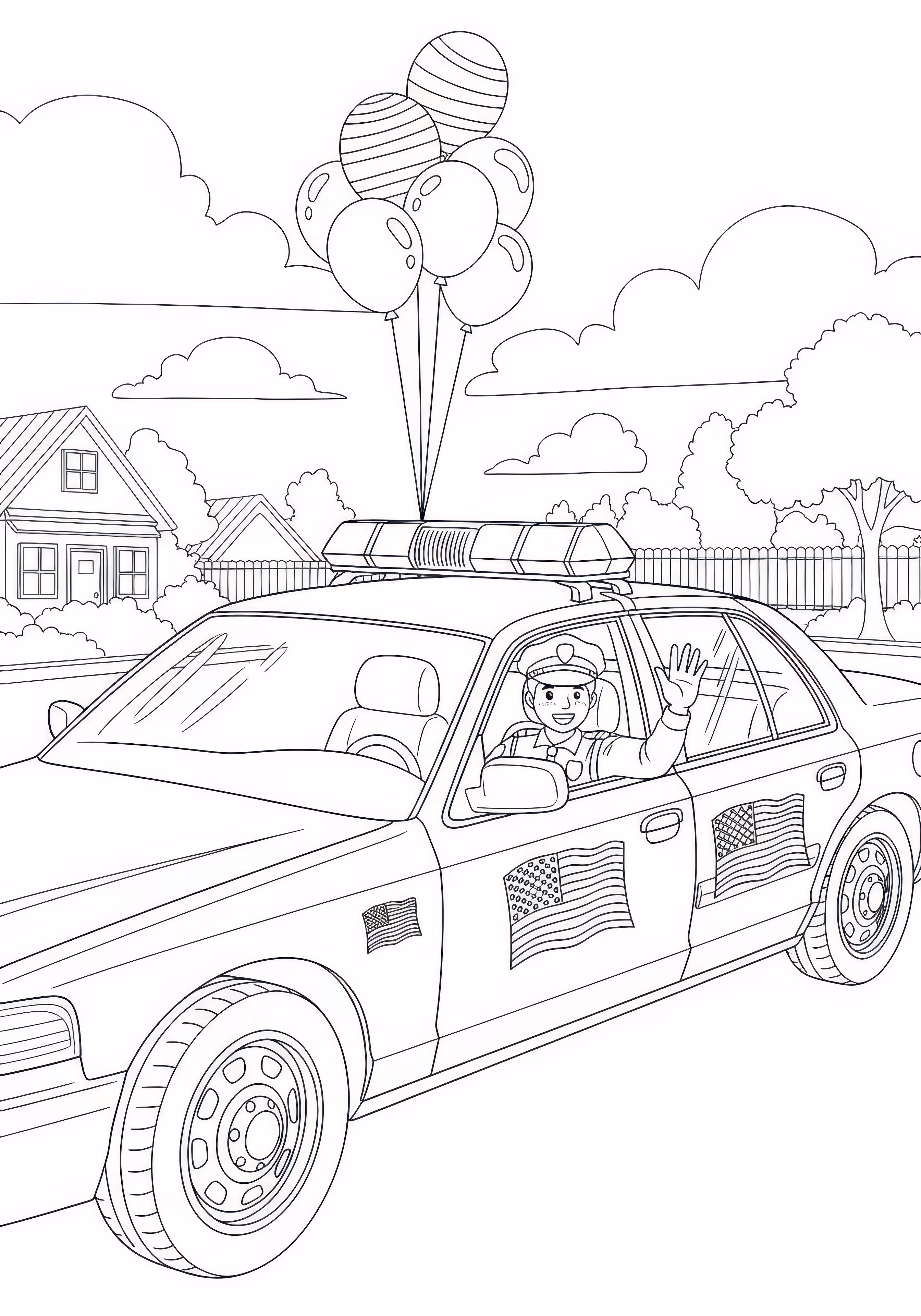 Police Car is a free printable coloring page designed for kids in scene style. This medium difficulty coloring sheet features medium outlines, perfect for young artists.