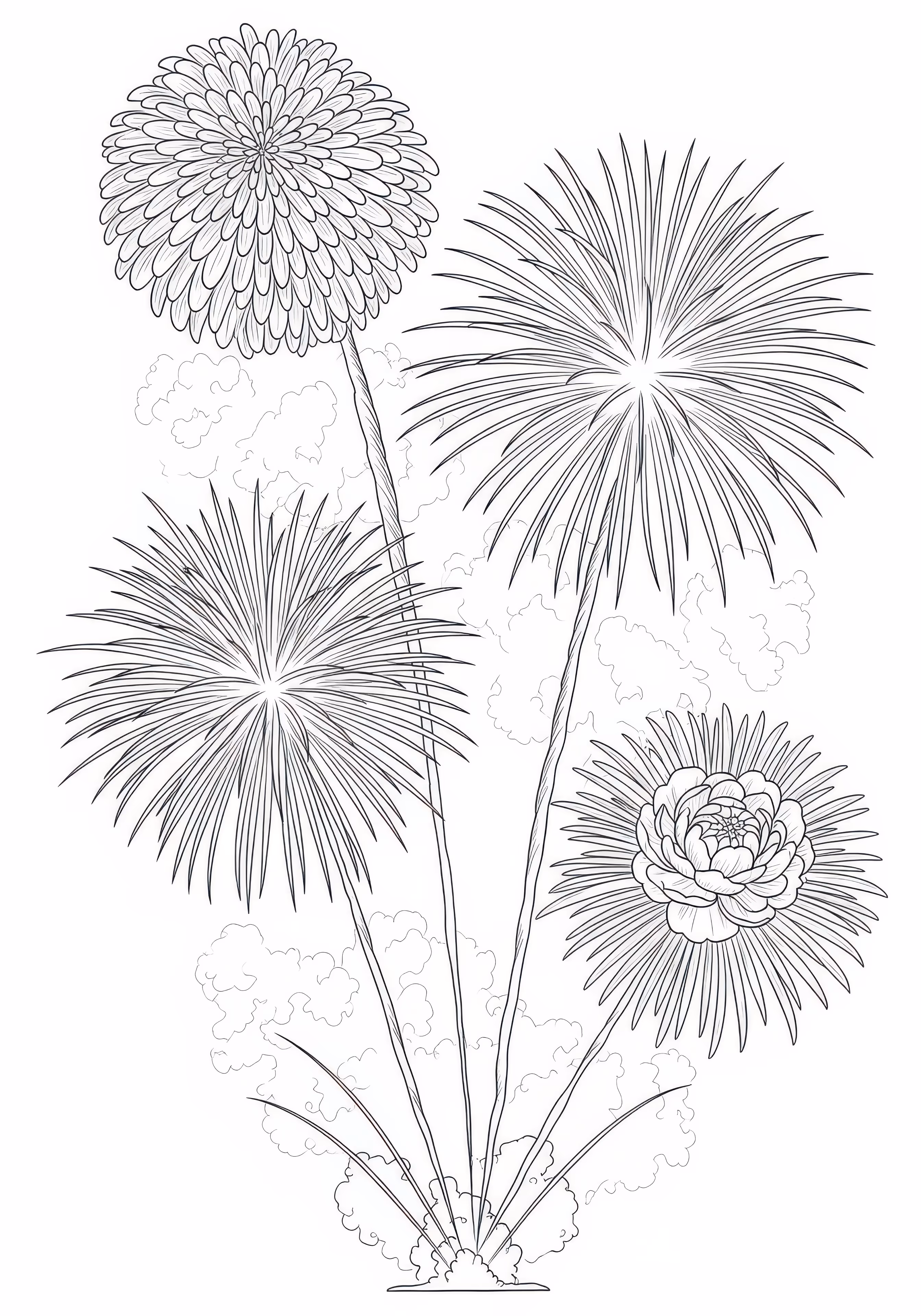 Realistic Fireworks is a free printable coloring page designed for tweens in realistic style. This hard difficulty coloring sheet features medium outlines, perfect for young artists.