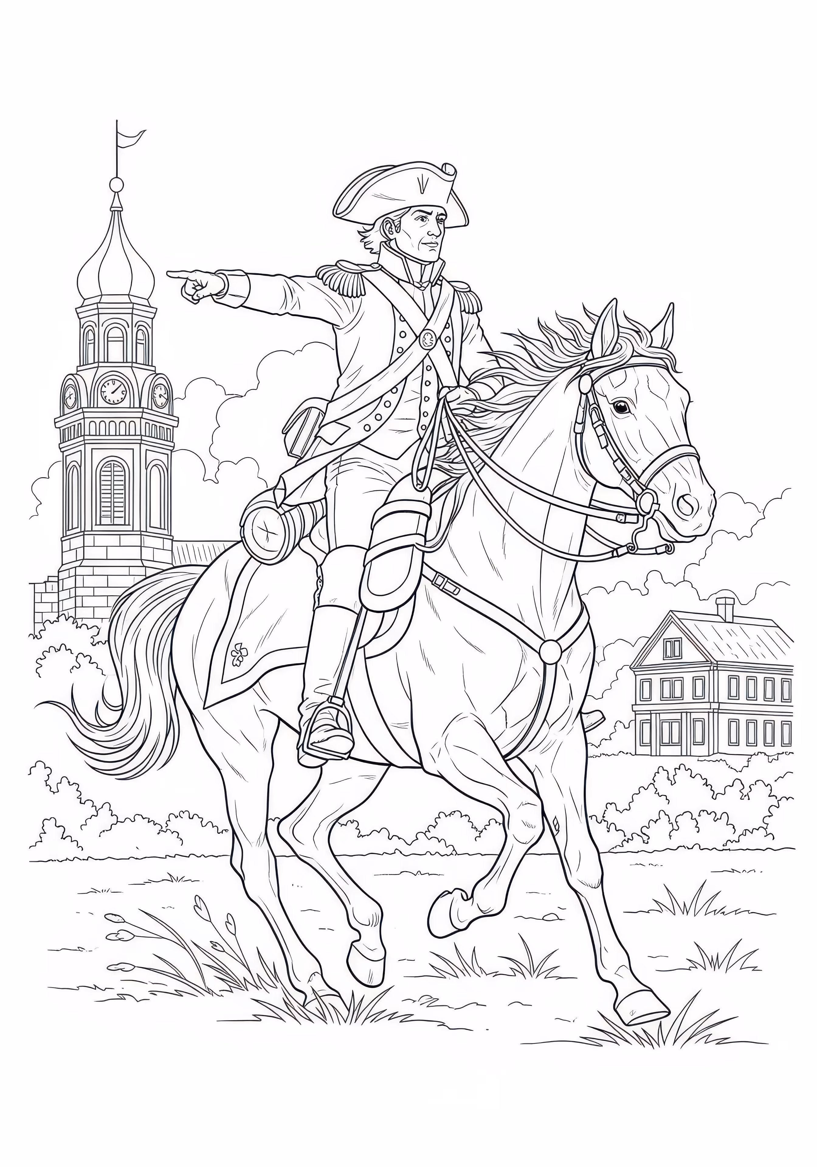 Riding Horse is a free printable coloring page designed for tweens in historical style. This hard difficulty coloring sheet features medium outlines, perfect for young artists.