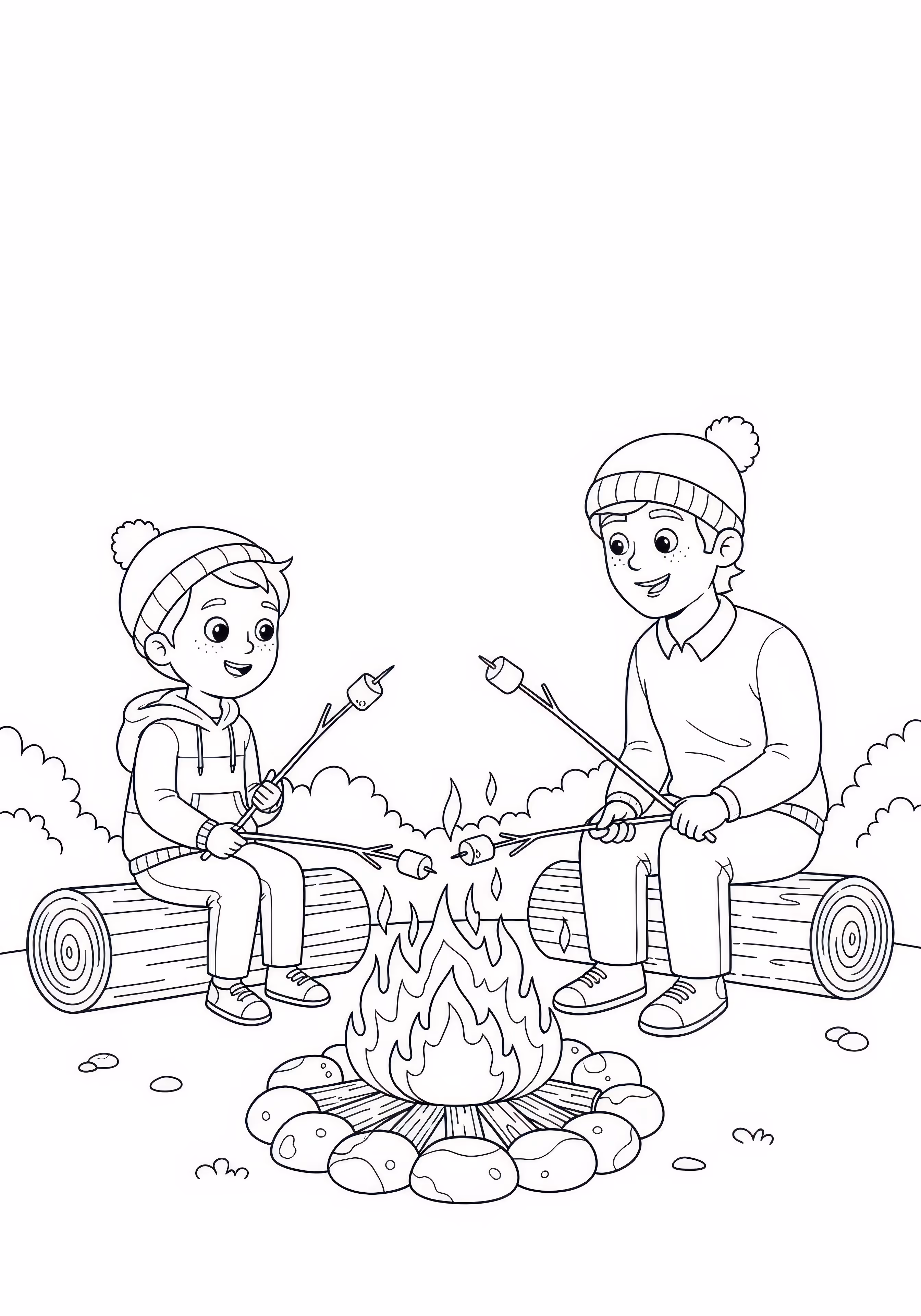 Roasting Marshmallow is a free printable coloring page designed for kids in cartoon style. This medium difficulty coloring sheet features medium outlines, perfect for young artists.