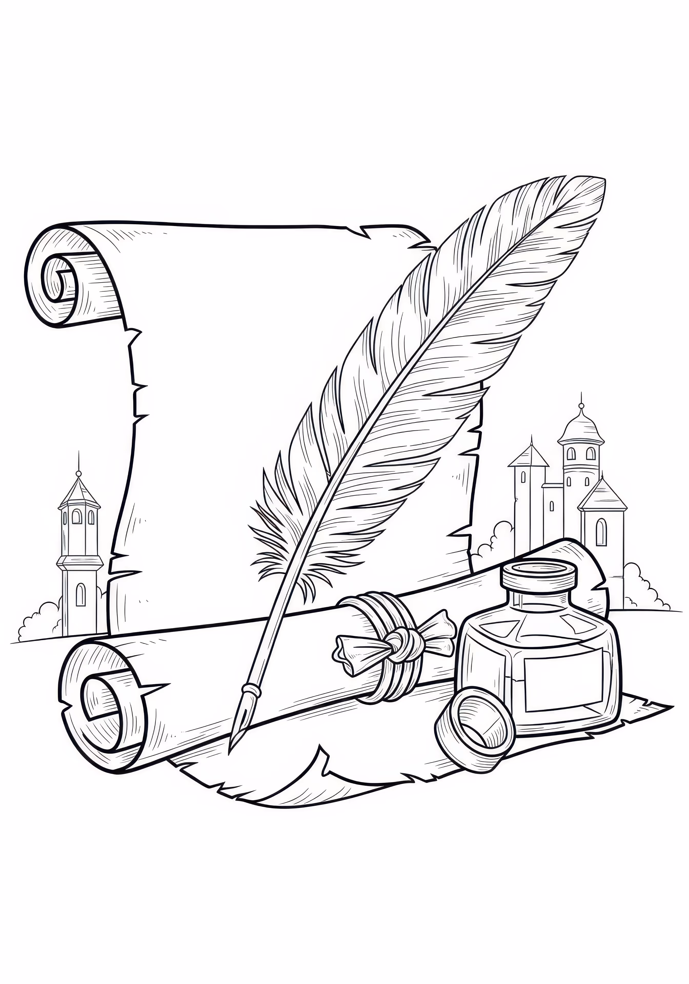 Scroll Quill is a free printable coloring page designed for tweens in historical style. This hard difficulty coloring sheet features medium outlines, perfect for young artists.