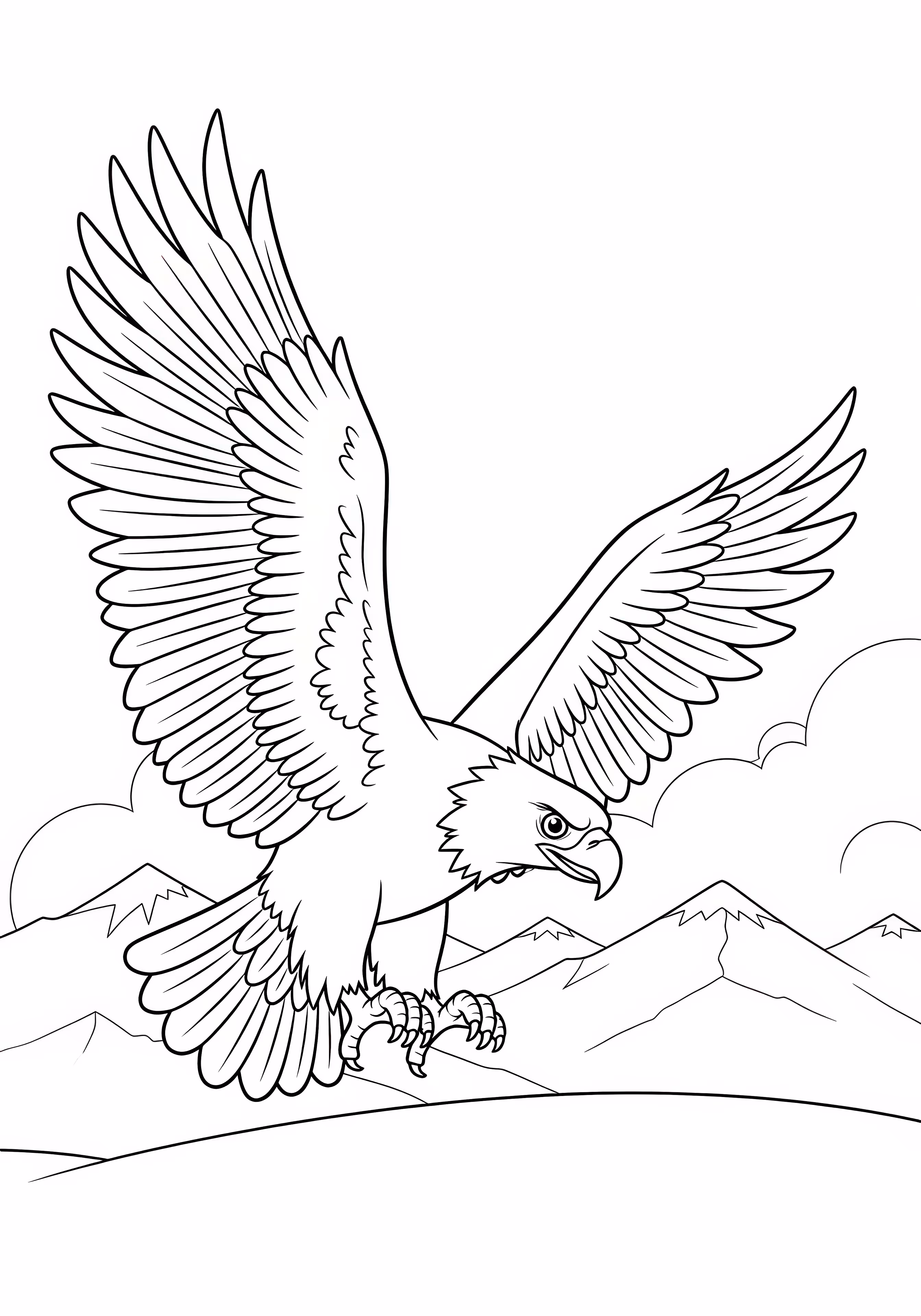 Soaring Eagle is a free printable coloring page designed for kids in cartoon style. This medium difficulty coloring sheet features medium outlines, perfect for young artists.