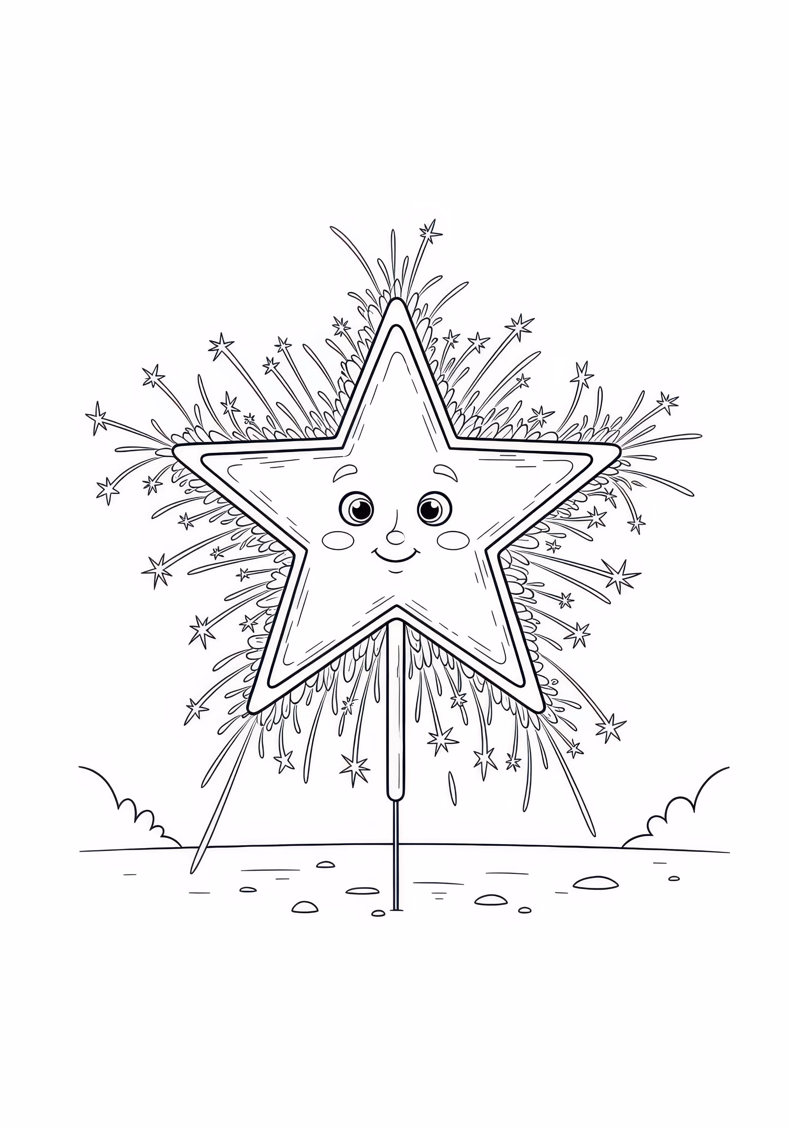 Sparkler Star is a free printable coloring page designed for kids in cartoon style. This medium difficulty coloring sheet features medium outlines, perfect for young artists.