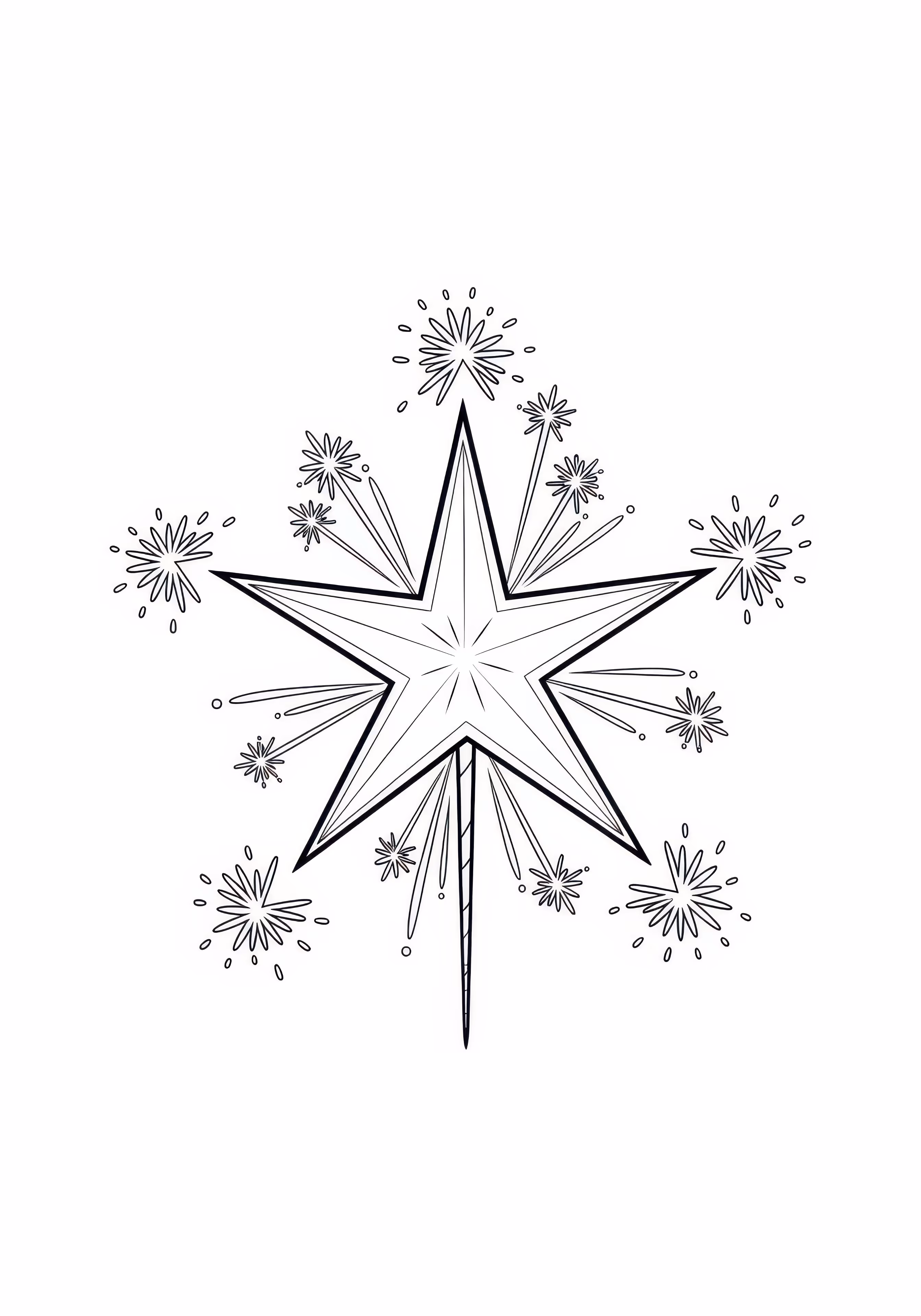 Star Fireworks is a free printable coloring page designed for kids in cartoon style. This medium difficulty coloring sheet features medium outlines, perfect for young artists.