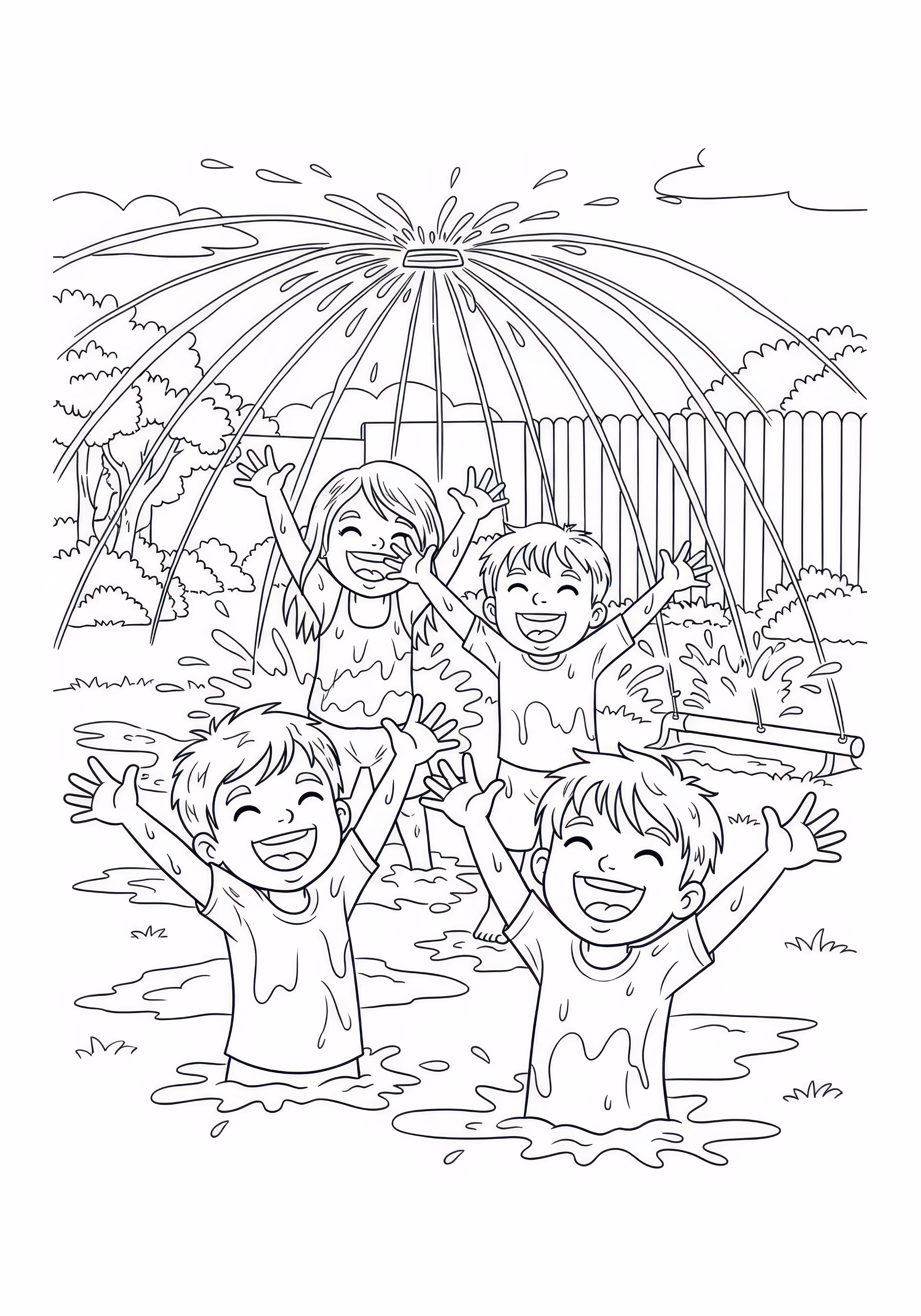 Summer Splashing is a free printable coloring page designed for kids in scene style. This medium difficulty coloring sheet features medium outlines, perfect for young artists.