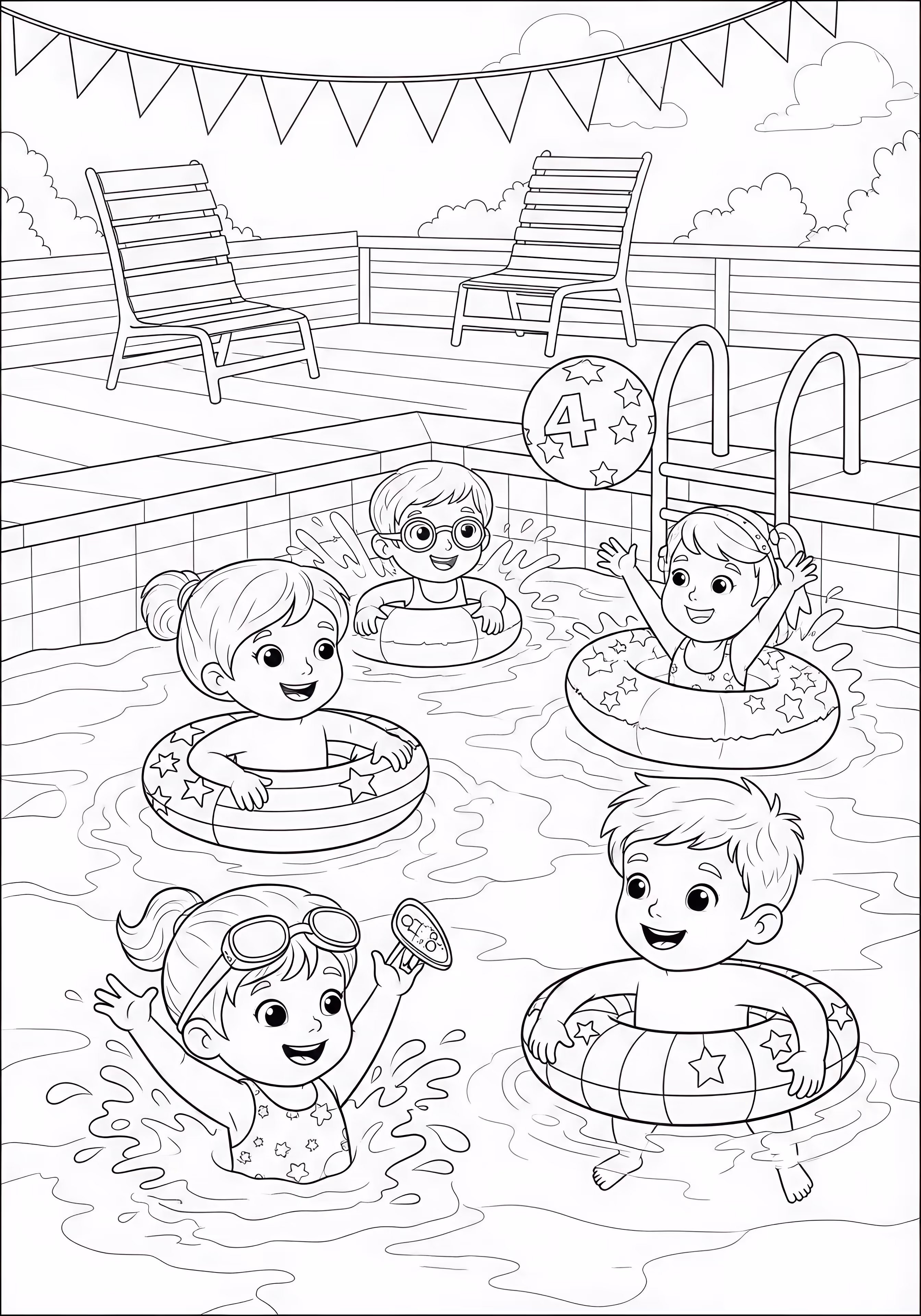 Swimming Pool is a free printable coloring page designed for kids in cartoon style. This medium difficulty coloring sheet features medium outlines, perfect for young artists.