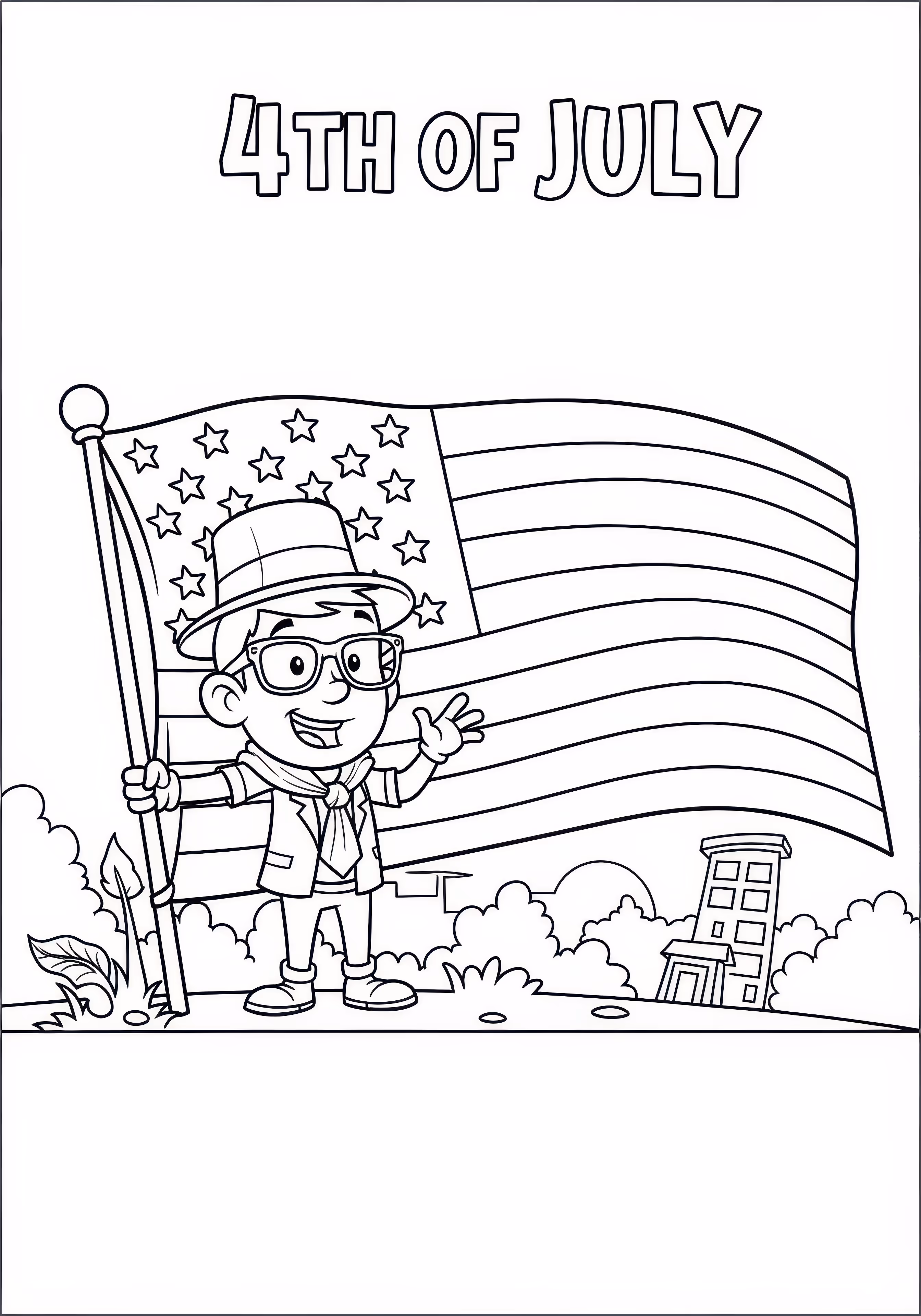 Thick Lines July is a free printable coloring page designed for kids in cartoon style. This medium difficulty coloring sheet features medium outlines, perfect for young artists.