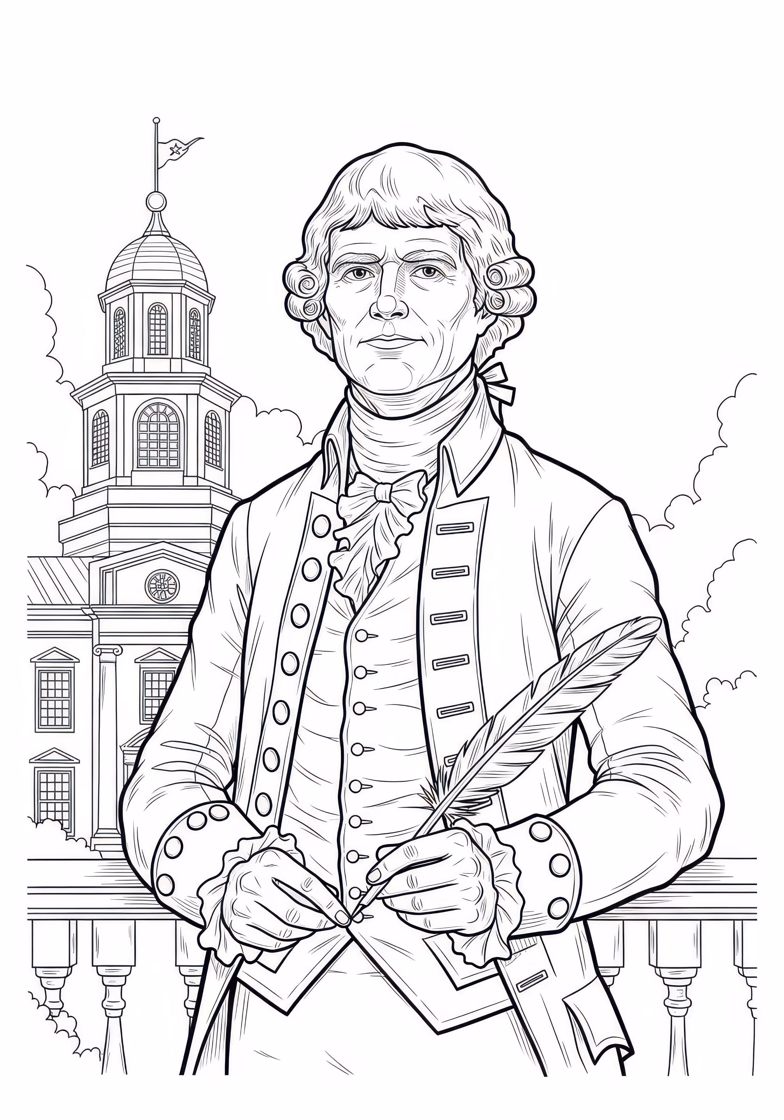 Thomas Jefferson is a free printable coloring page designed for tweens in historical style. This hard difficulty coloring sheet features medium outlines, perfect for young artists.