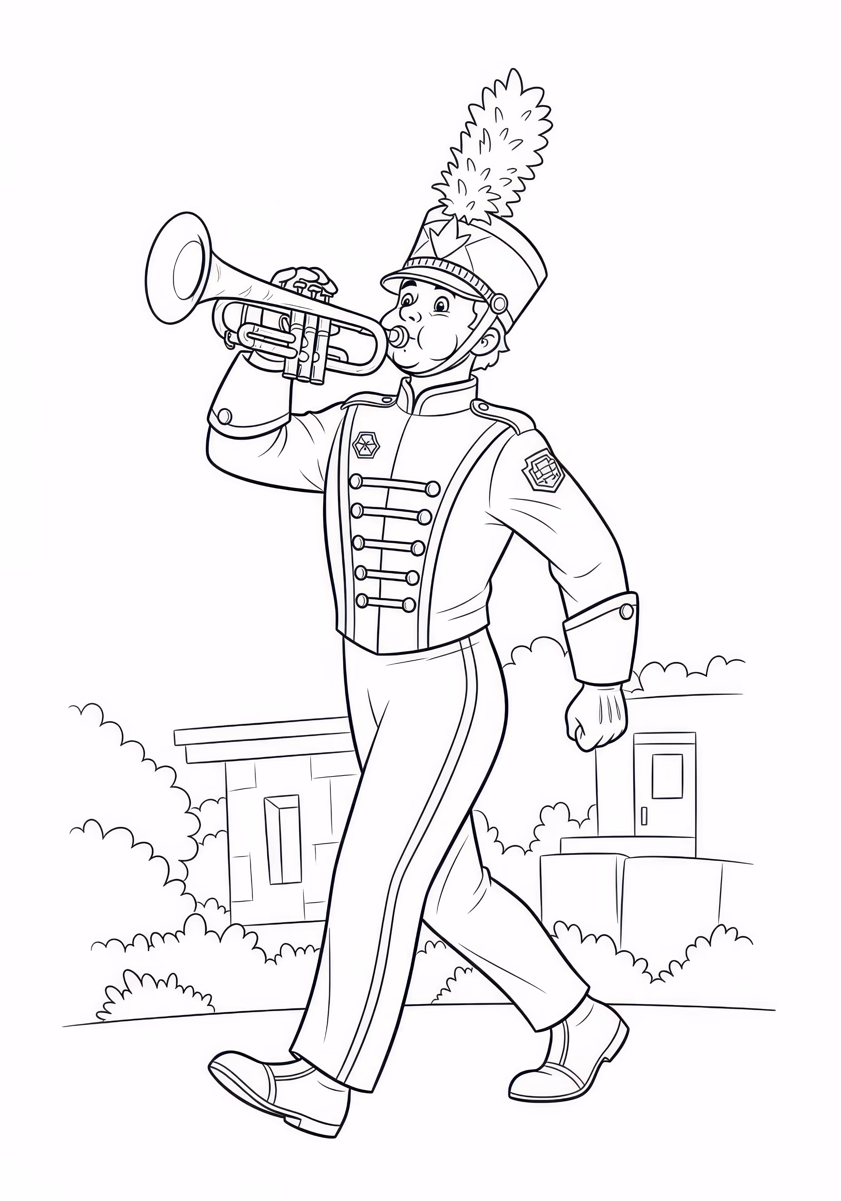Trumpet Player is a free printable coloring page designed for kids in scene style. This medium difficulty coloring sheet features medium outlines, perfect for young artists.