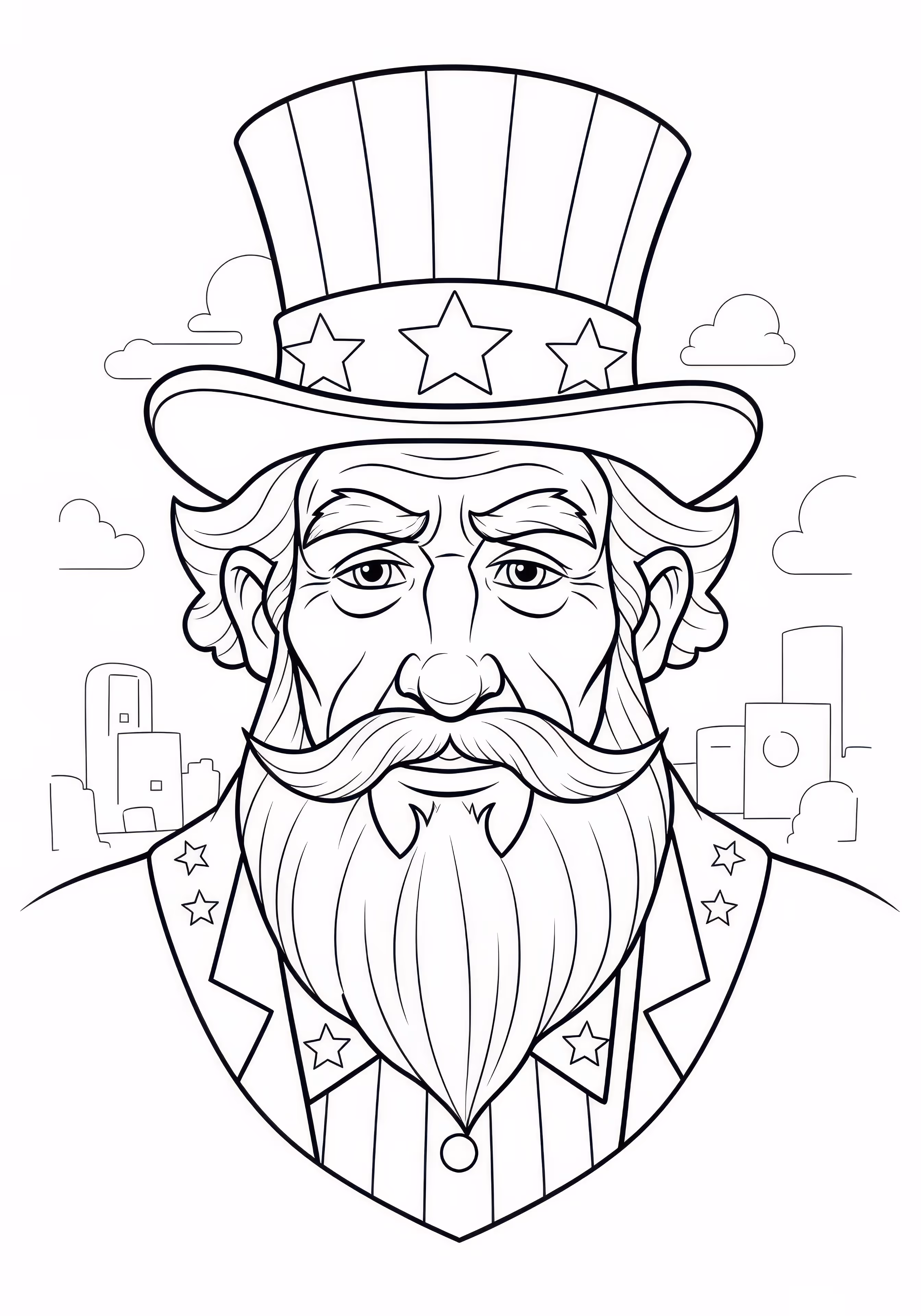 Uncle Sam Face is a free printable coloring page designed for kids in cartoon style. This medium difficulty coloring sheet features medium outlines, perfect for young artists.