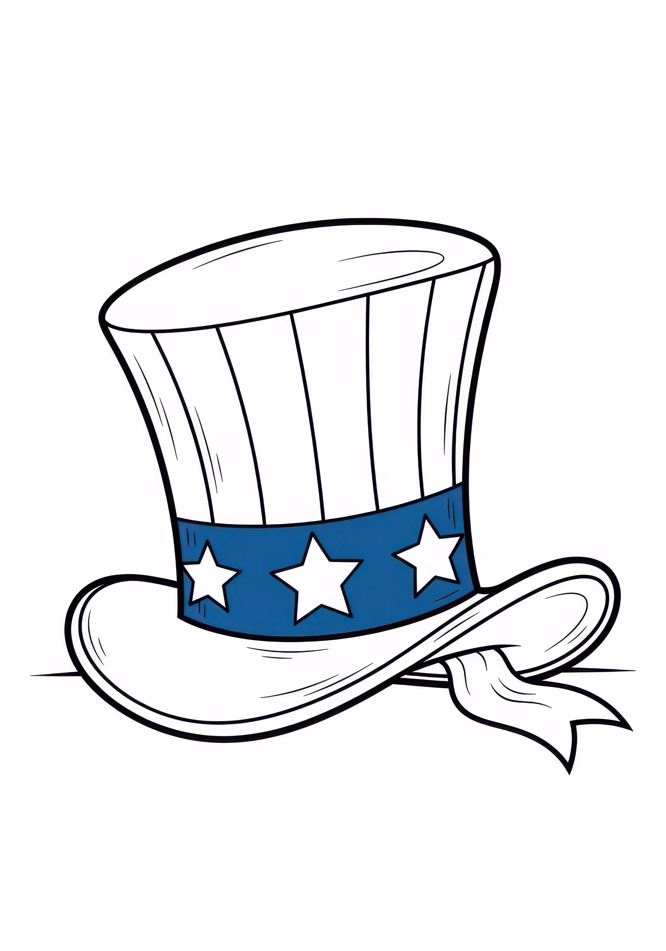Uncle Sam Hat is a free printable coloring page designed for kids in cartoon style. This medium difficulty coloring sheet features medium outlines, perfect for young artists.