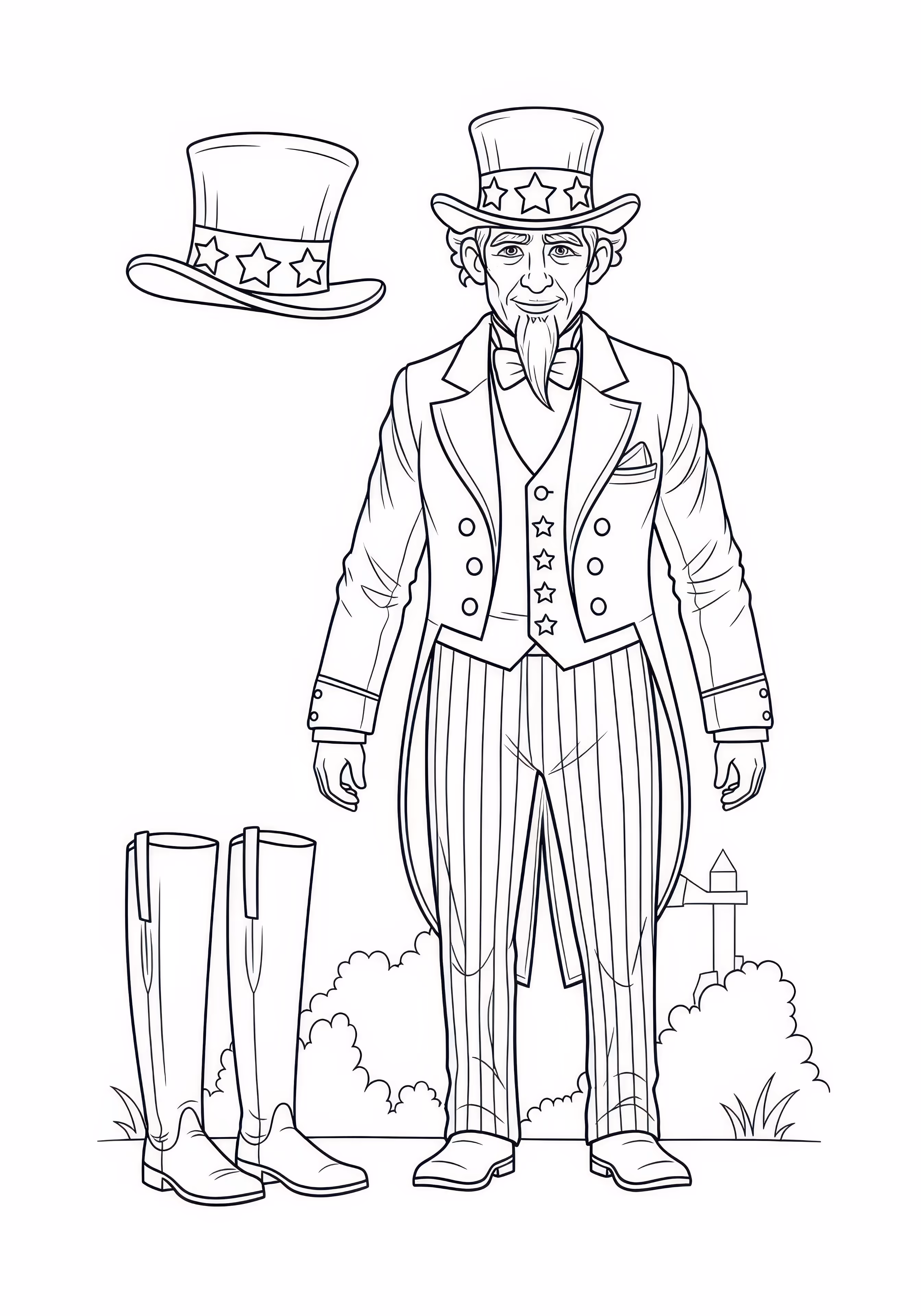 Uncle Sam Suit is a free printable coloring page designed for kids in cartoon style. This medium difficulty coloring sheet features medium outlines, perfect for young artists.