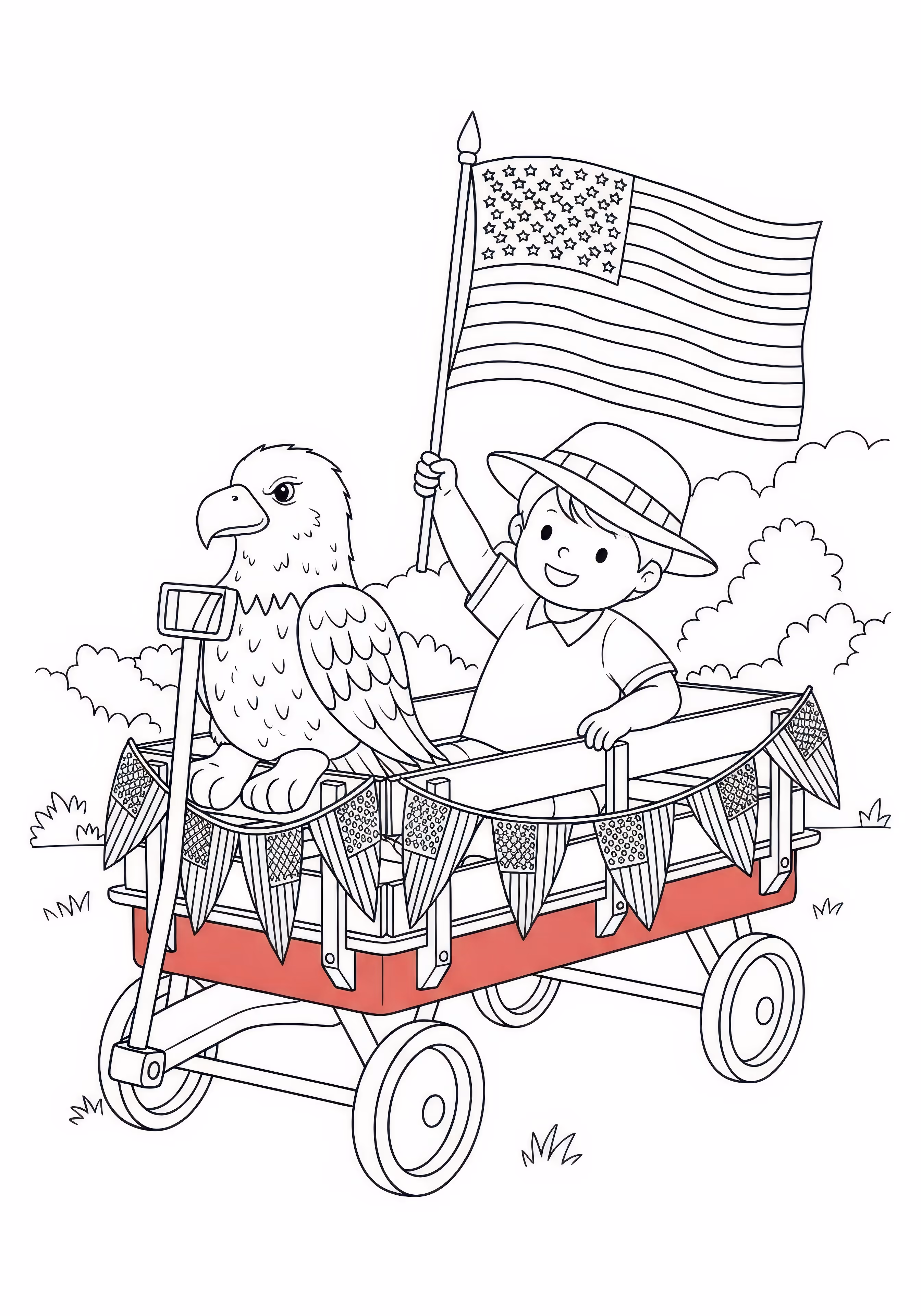 Wagon Parade is a free printable coloring page designed for kids in scene style. This medium difficulty coloring sheet features medium outlines, perfect for young artists.